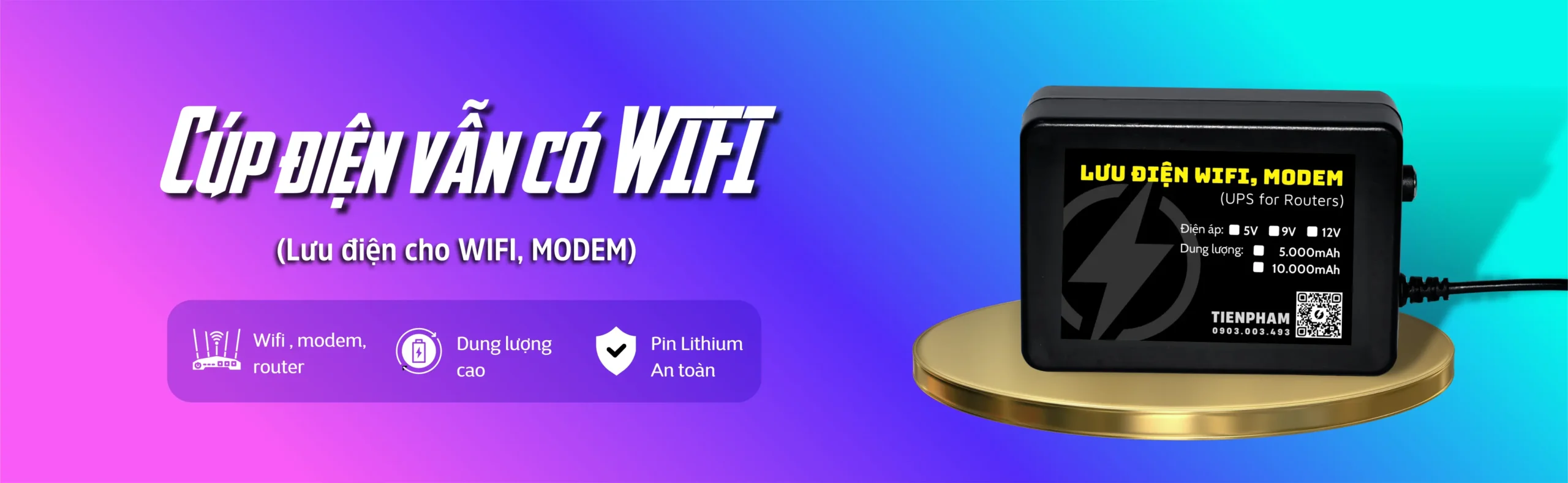 Nguồn dự phòng Compare Quick view Add to wishlist Add to cart Bộ Lưu Điện Cho Modem Wifi 12V Rated 5.00 out of 5 240.000 ₫ Compare Quick view Add to wishlist Read more Bộ Lưu Điện Wifi 6 dùng cho 2 thiết Bị Rated 0 out of 5 Phụ kiện Compare Quick view Add to wishlist Add to cart Adapter 12V 2A dành cho UPS, camera Rated 0 out of 5 30.000 ₫ Compare Quick view Add to wishlist Add to cart Dây chuyển DC 5.5 ra 2 đầu đực (male) Rated 0 out of 5 9.000 ₫ Khách hàng nói gì về TIENPHAM?